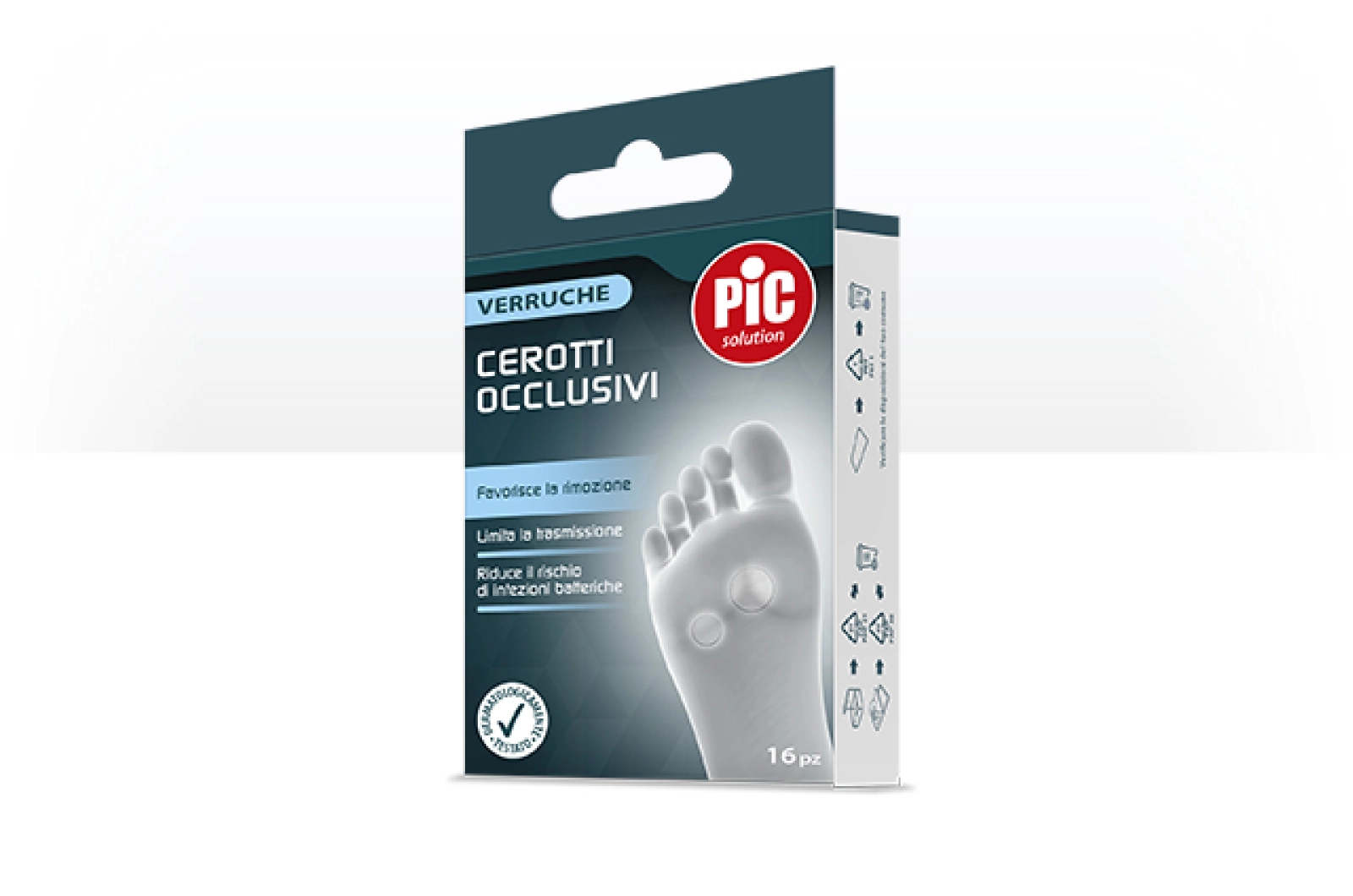 I cerotti occlusivi di Pic proteggono la verruca, limitandone la trasmissione ad altre zone e riducendo il rischio di infezioni batteriche.