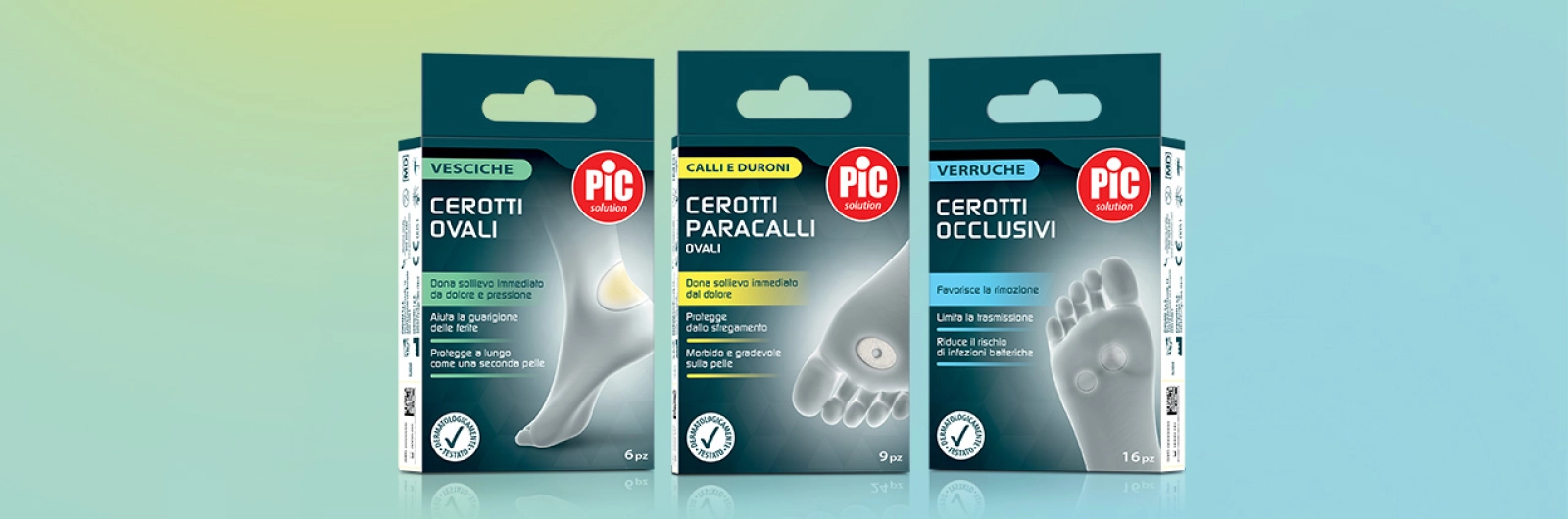 Dalla grande esperienza di Pic Solution nella medicazione e nella gestione dei più diversi tipi di ferite della pelle, una linea semplice che si prende cura delle più comuni problematiche cutanee dei piedi: verruche, vesciche, calli e duroni.
